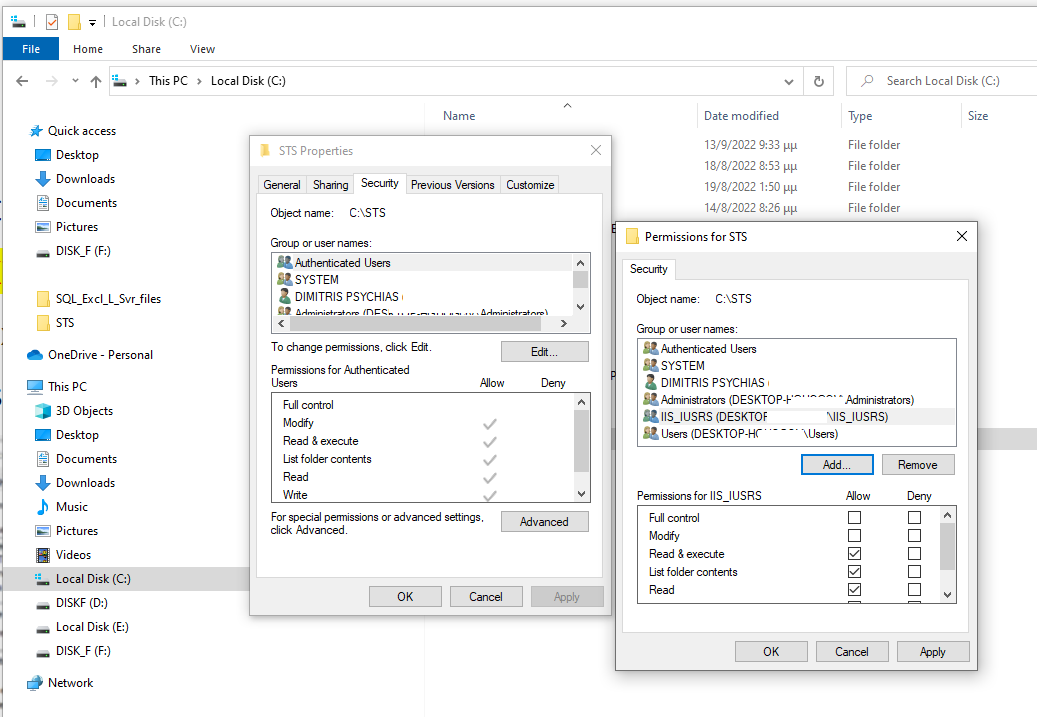 In case you use IIS we have to give Read Rights for the user IWPD.. to folder 'C:\STS